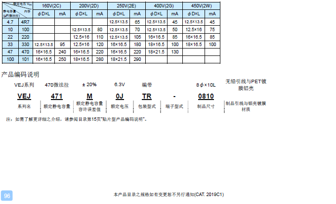 ‧4φ ~ 18φ, 105℃、2,000小时寿命保证 ‧适用表面黏着之高密度PCB设计