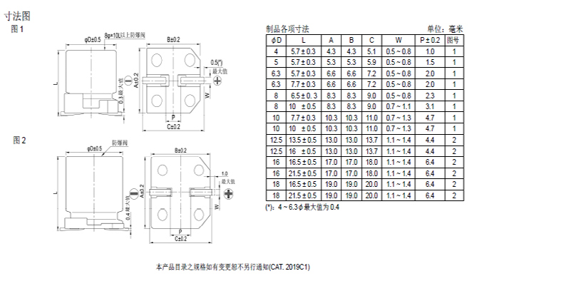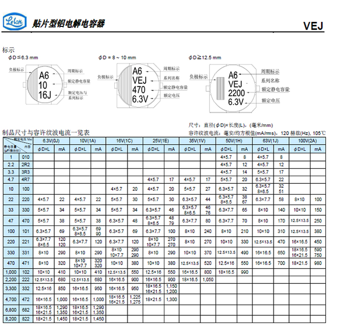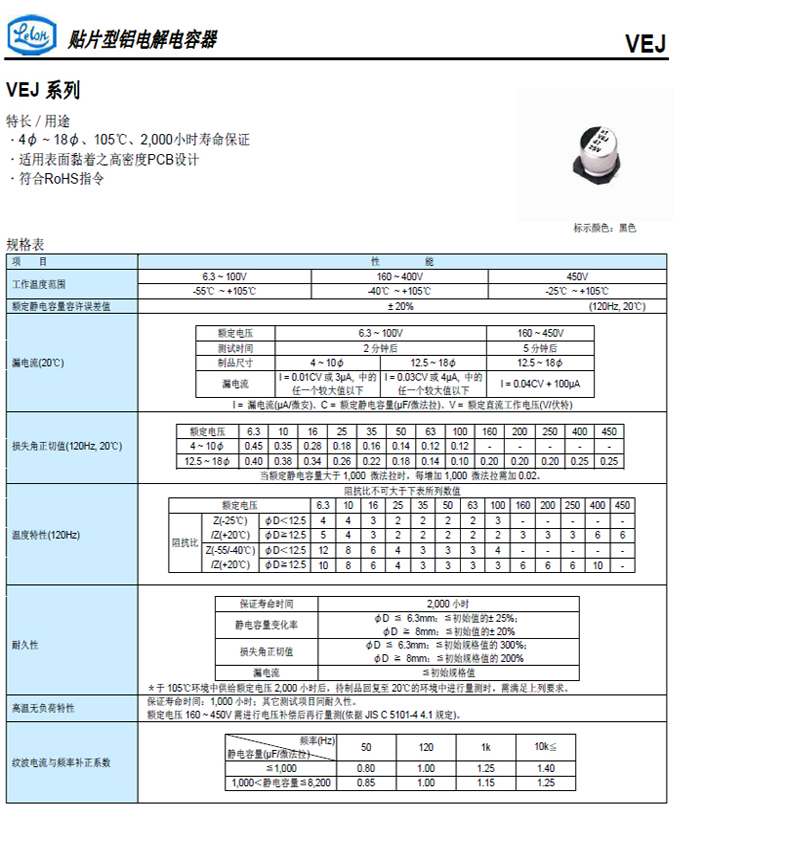 ‧4φ ~ 18φ, 105℃、2,000小时寿命保证