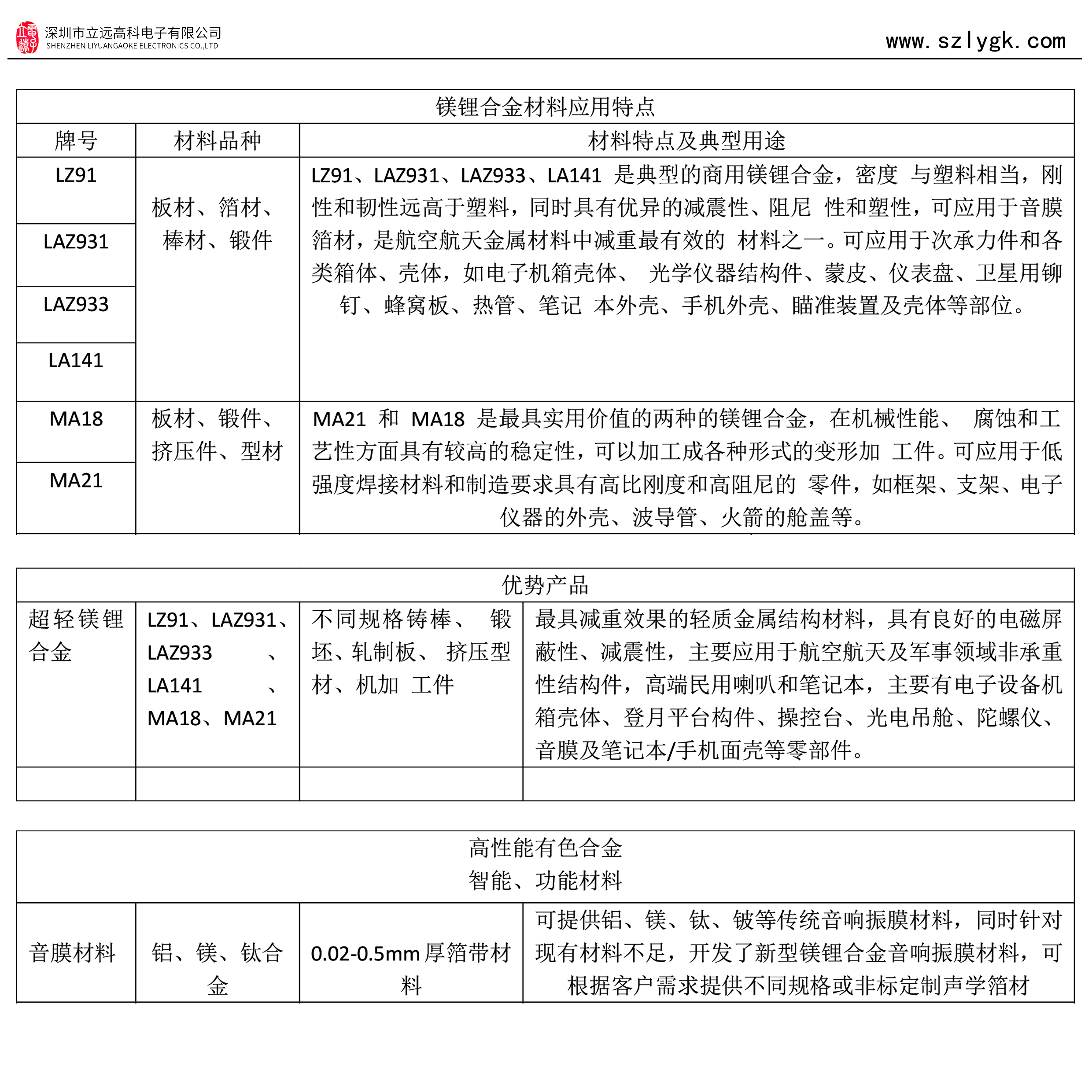 特点及用途:强度高,耐腐蚀性好,适合航空航 天领域中等强度部件,可替代常规 的 ME20,AZ40 等产品